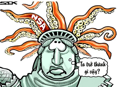 | Bạch tuộc NSA. Tranh: Steve Sack (Mỹ). |