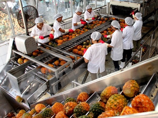 Chế biến dứa xuất khẩu tại Công ty Cổ phần Thực phẩm xuất khẩu Đồng Giao, tỉnh Ninh Bình. (Ảnh: TTXVN) |
