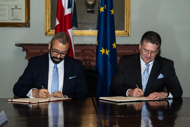 Anh và EU ký Khung thỏa thuận Windsor. Ảnh: VOV |