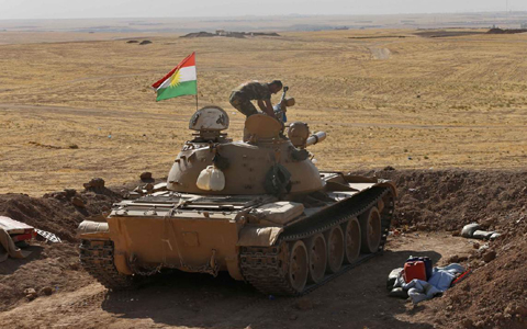 Xe tăng của lực lượng người Kurd. Chiếc xe tăng này hướng về khu vực do IS kiểm soát (ảnh: Reuters)