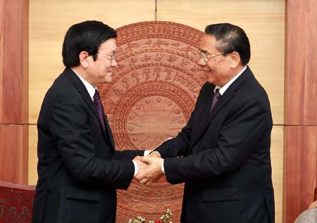 | Chủ tịch nước Trương Tấn Sang và Tổng Bí thư, Chủ tịch nước CHDCND Lào Chummaly Sayasone |