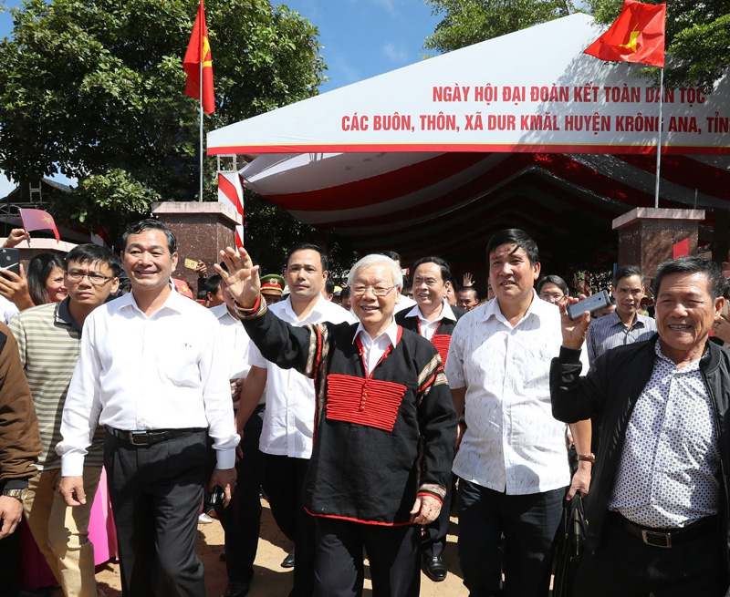 Sáng ngày 11/11/2018 vừa qua, Tổng Bí thư, Chủ tịch nước Nguyễn Phú Trọng đã dự ngày hội Đại đoàn kết toàn dân tộc ở xã Dur Kmăl, huyện Krông Ana, tỉnh Đắk Lắk,