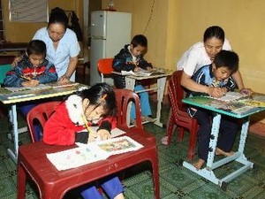 | Lớp học cho các em nhở bị nhiễm chất độc da cam/dioxin tại Trung tâm phục hồi chức năng xã Cam Nghĩa, huyện Cam Lộ, Quảng Trị. |