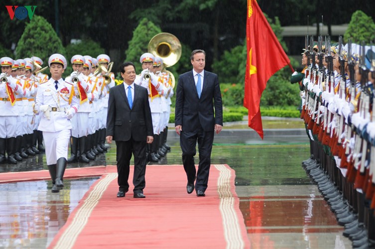 | Thủ tướng Nguyễn Tấn Dũng chủ trì trọng thể lễ đón Thủ tướng David Cameron sang thăm chính thức Việt Nam. Ảnh: Thành Chung |