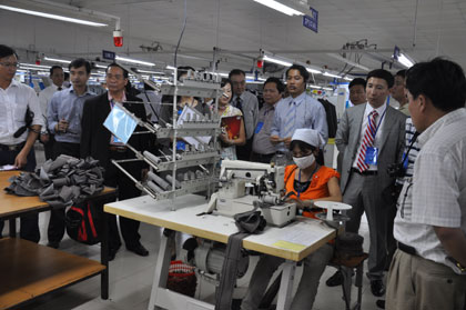 Đoàn kiều bào thăm xưởng cắt may tự động của Công ty Đông Tài tại Hải Dương do ông Phạm Minh Nam (kiều bào Anh) làm Chủ tịch Hội đồng Quản trị