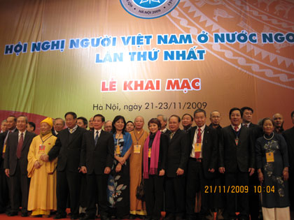 Đại biểu kiều bào tham dự Hội nghị NVNONN lần thứ nhất cùng các lãnh đạo Đảng, Nhà nước, tại Hà Nội, tháng 11/2009