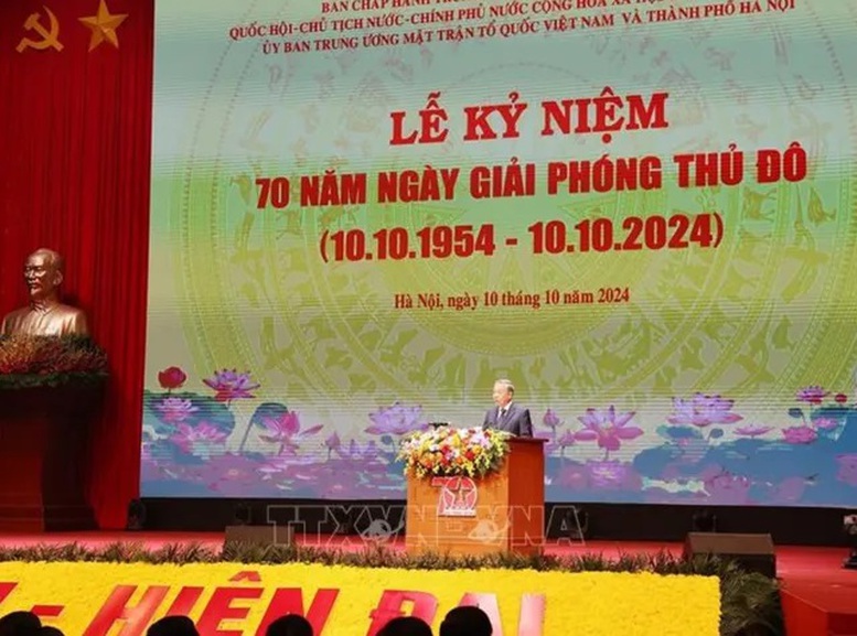 Tổng bí thư, Chủ tịch nước Tô Lâm đọc Diễn văn kỷ niệm 70 năm Ngày Giải phóng Thủ đô - Ảnh: baochinhphu.vn |