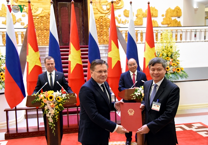 Trong chuyến thăm này, đã có 15 văn kiện được ký kết về hợp tác trong các lĩnh vực công nghiệp, ngân hàng và an ninh thông tin. Hai bên nhất trí tạo động lực cho Hiệp định thương mại tự do giữa Liên minh kinh tế Á-Âu và Việt Nam phát huy hiệu quả. Sau 2 năm hiệp định có hiệu lực, kim ngạch thương mại Việt -Nga đã đạt 3,55 tỷ USD năm 2017, tăng 31% so với năm 2016, còn trong 9 tháng đầu năm 2018 đạt 3,4 tỷ USD, tăng gần 37% so với cùng kỳ năm 2017. Đại sứ Việt Nam tại Nga Ngô Đức Mạnh cho rằng: "Nga là một thị trường lớn với 140 triệu dân và có đông người Việt Nam sinh sống. Việt Nam cũng là nước đầu tiên ký hiệp định FTA với Liên minh kinh tế Á-Âu cho nên đây là cơ hội lớn cho các doanh nghiệp của Việt Nam. Trước hết, chúng ta có thể cung cấp các mặt hàng có tính bổ trợ cho nước Nga như các sản phẩm của miền nhiệt đới, ví dụ như hoa quả. Điều đáng mừng là hàng hóa của Việt Nam chất lượng ngày càng cao và đáp ứng được nhu cầu ngày càng cao của người dân Nga. Ngoài ra, chúng ta có lực lượng đông đảo người Việt Nam ở Nga quen với nước Nga, hiểu về văn hóa nước Nga và họ chính là cầu nối để cho hàng hóa Việt Nam và Nga".
