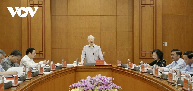 Tổng Bí thư Nguyễn Phú Trọng phát biểu chỉ đạo tại cuộc họp Thường trực Ban chỉ đạo sáng 10/5. Ảnh: VOV |