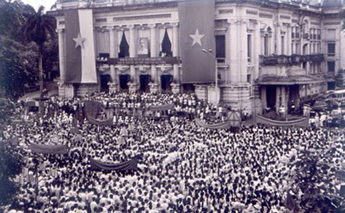 | Mít tinh trước Quảng trường Nhà hát lớn ngày 19 tháng 8 năm 1945. (Ảnh: baodienbienphu) |