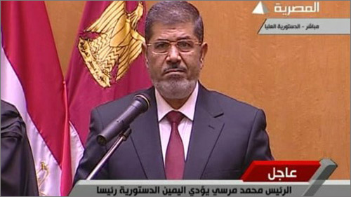 Tân Tổng thống Ai Cập Mohamed Mursi phát biểu tại Lễ nhậm chức (Ảnh: Reuters)