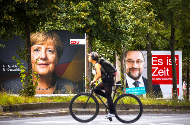 Những apphich vận động bầu cử của bà Angela Merkel và ông Martin Schulz (Ảnh: AFP) |