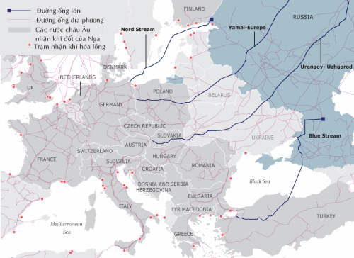 Các đường ống khí đốt từ Nga đến phương Tây. Đồ họa: Itar-Tass