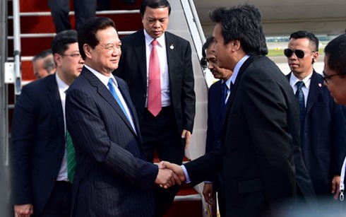 | Đại diện Chính phủ Malaysia đón Thủ tướng Nguyễn Tấn Dũng và Đoàn Cấp cao Việt Nam trong dịp sang dự Hội nghị Cấp cao ASEAN lần thứ 26. Ảnh: VGP/Nhật Bắc |