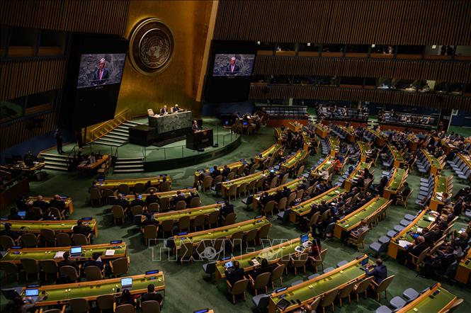 Toàn cảnh Hội nghị đánh giá Hiệp ước không phổ biến vũ khí hạt nhân (NPT) ở New York, Mỹ, ngày 1/8/2022. Ảnh: AFP/TTXVN |