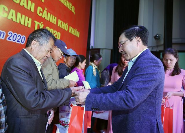Cũng trong dịp này, Phó Thủ tướng Chính phủ, Bộ trưởng Bộ Ngoại giao Phạm Bình Minh thăm, chúc Tết, tặng quà gia đình chính sách, hộ nghèo, nạn nhân chất độc da cam, công nhân, người lao động có hoàn cảnh khó khăn trên địa bàn tỉnh Hải Dương. Phó Thủ tướng Chính phủ, Bộ trưởng Bộ Ngoại giao Phạm Bình Minh ghi nhận sự quan tâm của tỉnh Hải Dương với người nghèo và các gia đình chính sách và nêu rõ: Tôi đề nghị các đồng chí lãnh đạo, các cấp, các ngành của tỉnh Hải Dương tiếp tục quan tâm hơn nữa, tiếp tục có những chính sách và vận động các nhà hảo tâm có chính sách để hỗ trợ cho các nạn nhân nhiễm chất độc da cam, hộ nghèo, gia đình chính sách và công nhân cũng như người lao động còn có hoàn cảnh khó khăn để cho tất cả những gia đình này được có cuộc sống tốt đẹp hơn.