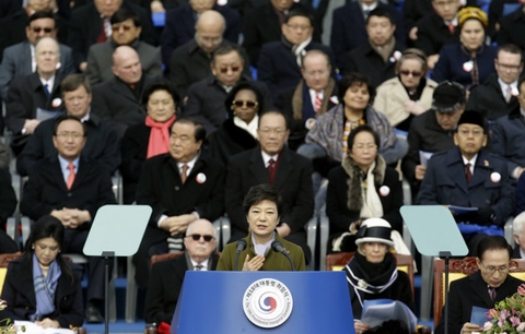 | Nữ Tổng thống Hàn Quốc đầu tiên trong lễ tuyên thệ nhậm chức. (Ảnh AFP) |