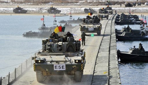 | Xe bọc thép của Hàn Quốc tham gia cuộc tập trận mới đây tại phía đông Seoul (Ảnh: AFP) |