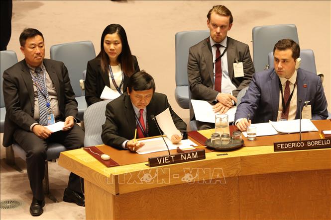 Ngày 11/4/2019, tại trụ sở Liên hợp quốc (LHQ) ở New York (Mỹ), Hội đồng Bảo an LHQ tổ chức phiên thảo luận mở với chủ đề “Phụ nữ trong hoạt động gìn giữ hòa bình của LHQ”. Thứ trưởng Bộ Ngoại giao Lê Hoài Trung, Trưởng đoàn Việt Nam tham dự và có bài phát biểu tại phiên thảo luận - Ảnh: Hoài Thanh/TTXVN |