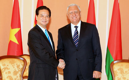 Thủ tướng Nguyễn Tấn Dũng và Thủ tướng M.Myiasnikovich. Ảnh: TTXVN