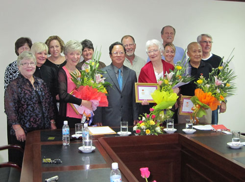 | Bà Cherry Mellor (đứng tứ 5 từ phải sang) đã đến Việt Nam 6 lần kể từ khi Việt Nam và Mỹ bình thường hóa quan hệ ngoại giao |