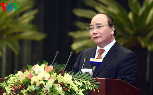 | Thủ tướng Nguyễn Xuân Phúc phát biểu tại hội nghị (Ảnh: Vũ Dũng/VOV) |