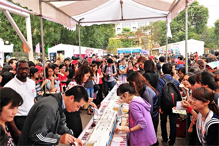 | Chiếc bánh dài nhất Việt Nam đã được chia cho hàng nghìn sinh viên tham gia Ngày hội Pháp ngữ tại Đại học Hà Nội năm 2013... |