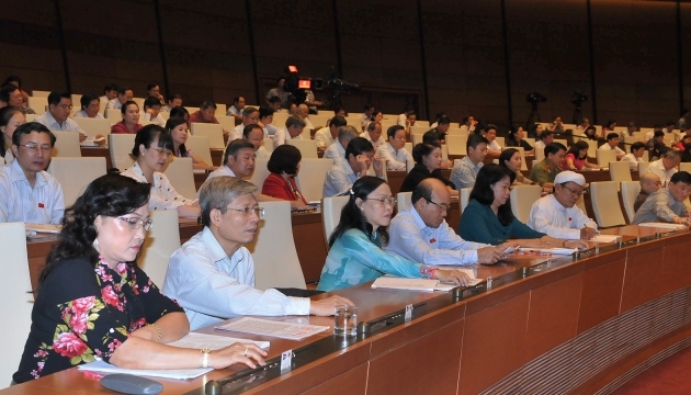 | Đại biểu Quốc hội biểu quyết thông qua Luật Mặt trận Tổ quốc Việt Nam (sửa đổi). Ảnh: NGUYỄN ĐĂNG KHOA. |