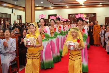 Trong ngày Phật đản Phật lịch 2557, chùa chiền khắp nơi từ Hà Nội đến Huế, thành phố Hồ Chí Minh và các địa phương trong cả nước đều chăng đèn, kết hoa và rộn ràng các hoạt động sinh hoạt tín ngưỡng. Hàng triệu đồng bào Phật tử trong và ngoài nước hoan hỉ thực hiện lễ dâng hương, tụng kinh, lễ tắm Phật, thả bóng bay cầu chúc hòa bình, tham gia công tác từ thiện xã hội… Một lễ Phật đản vui tươi, an lành và hạnh phúc của các tín đồ Phật tử là minh chứng sinh động cho sự phát triển mọi mặt của Phật giáo Việt Nam, như lời Hòa thượng Thích Gia Quang, Phó Chủ tịch Hội đồng Trị sự, Trung ương Giáo Hội Phật giáo Việt Nam, khẳng định trong buổi lễ trọng thể mừng Phật đản tại Hà Nội: “Ngày nay, Giáo hội Phật giáo Việt Nam nối tiếp truyền thống vô úy của Phật giáo Việt Nam từ hai ngàn năm qua, được sự đồng tình ủng hộ của Nhà nước và quần chúng nhân dân, đã đạt được những thành tựu khả quan về các mặt hoạt động, tạo sức phát triển mạnh mẽ với hàng triệu Phật tử, chưa kể số lượng đông đảo những người có xu hướng theo Phật giáo, 45 ngàn tăng ni và gần 16 ngàn tự viện trên khắp cả nước”.