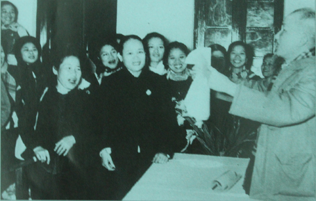 | Chủ tịch Hồ Chí Minh tới dự Hội nghị Cán bộ phụ nữ miền Bắc (26/1/1956) - Ảnh tư liệu. |