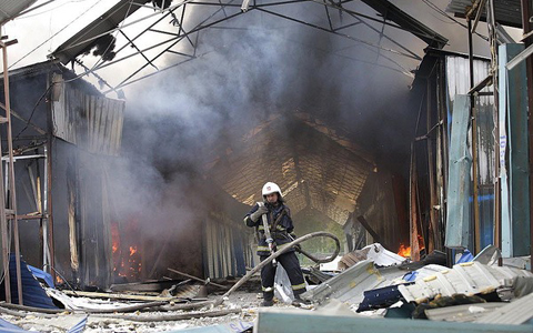 Một khu chợ ở Donetsk bị trúng pháo hôm 3/6 (ảnh: Reuters)