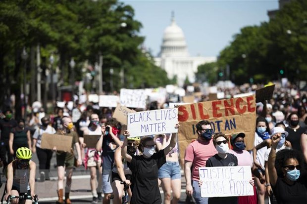 Người biểu tình tuần hành tại Washington D.C., Mỹ ngày 29/5/2020, bày tỏ phẫn nộ trước cái chết của người da màu George Floyd. - Ảnh: THX/TTXVN |