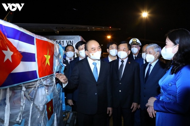 Trong chuyến thăm, hai nước đã ra Tuyên bố chung cấp cao với nội dung toàn diện, ký Kế hoạch hành động triển khai Chương trình nghị sự kinh tế 2021-2025 và nhiều văn kiện, thỏa thuận hợp tác về nông nghiệp, y tế, tư pháp, thông tin truyền thông, năng lượng, du lịch… Nổi bật nhất, Cuba đã cam kết cung cấp 10 triệu liều vaccine Abdala và chuyển giao công nghệ sản xuất cho Việt Nam, trước mắt giao ngay 01 triệu liều vaccine trong chuyến thăm. Việt Nam cũng tặng nhân dân Cuba 23.000 tấn gạo từ khi dịch COVID-19 bùng phát, riêng trong chuyến thăm này tặng 6.000 tấn gạo cùng một số thiết bị, vật tư y tế, giống ngô lai, máy tính. Chủ tịch nước Nguyễn Xuân Phúc khẳng định: Làm được điều gì đóng góp cho mối quan hệ tốt đẹp Việt Nam-Cuba, Đảng, Nhà nước và nhân dân Việt Nam luôn sẵn sàng. Dù Việt Nam còn nhiều khó khăn nhưng cố gắng đóng góp một phần nhỏ bé của mình hỗ trợ cùng Cuba anh em. Đây là thông điệp chuyến đi này. Đảng, nhân dân Việt Nam luôn sát cánh kề vai cùng Đảng, nhân dân Cuba anh em.