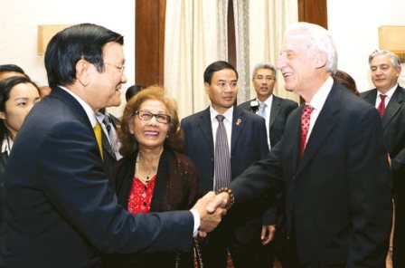 | Chủ tịch nước Trương Tấn Sang gặp gỡ thân mật bà con kiều bào, cán bộ Phái đoàn Việt Nam tại LHQ và bạn bè Hoa Kỳ. Ảnh: sggp.org.vn |