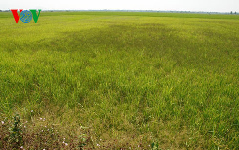 | Nhiều ruộng lúa đang kỳ trổ đòng ở cánh đồng xã Võ Xu, tỉnh Bình Thuận không đủ nước tưới |