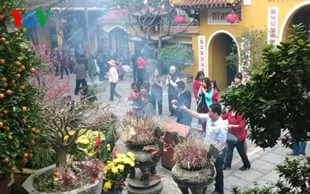 | Người dân đi lễ ở chùa Quán Sứ ngày Mồng Hai Tết Ất Mùi. Ảnh: VOV |