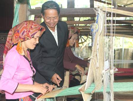 Dạy nghề dệt thổ cẩm cho đồng bào dân tộc Thái ở huyện Quỳ Châu, tỉnh Nghệ An. Ảnh : TTXVN