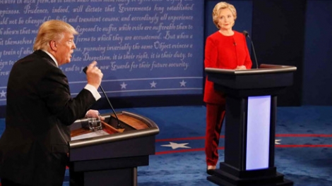 (VOV5) - Cuộc đua vào Nhà Trắng đang bước vào giai đoạn quyết định khi hai ứng cử viên Tổng thống Mỹ là bà Hilary Clinton và tỷ phú Donald Trumph hôm nay bắt đầu cuộc tranh luận trực tiếp đầu tiên trên truyền hình.