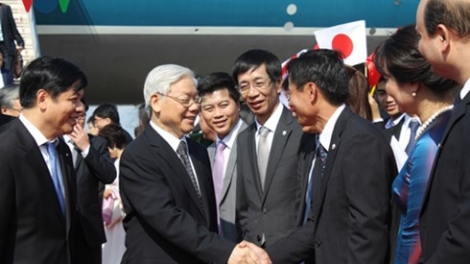(VOV5) - Chuyến thăm chính thức Nhật Bản của Tổng bí thư Ban chấp hành TƯ Đảng CSVN Nguyễn Phú Trọng là sự kiện chính trị đặc biệt trong quan hệ song phương Việt Nam-Nhật Bản năm 2015, mở ra tầm nhìn mới, thúc đẩy toàn diện và làm sâu sắc hơn quan hệ “Đối tác chiến lược sâu rộng Việt Nam – Nhật Bản vì hòa bình và phồn vinh ở châu Á” theo phương châm “tăng cường tin cậy, kết nối kinh tế, mở rộng hợp tác, phát triển bền vững, hướng tới tương lai”.