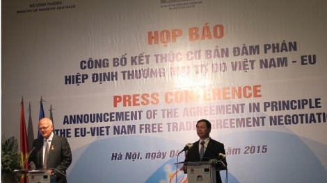 (VOV5) - Việt Nam và Liên minh châu Âu (EU) tuyên bố chính thức kết thúc đàm phán toàn bộ các nội dung cơ bản của Hiệp định thương mại tự do giữa Việt Nam và EU.
