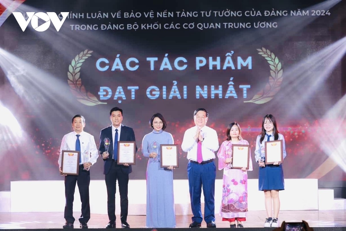 Sáng nay (01/10), tại Trung tâm Phát thanh Quốc gia, số 58 Quán sứ Hà Nội, Đảng uỷ Khối các cơ quan Trung ương phối hợp với Đài Tiếng nói Việt Nam, Đài Truyền hình Việt Nam, Thông tấn xã Việt Nam, Báo Nhân Dân, Tạp chí Cộng sản tổ chức Lễ tổng kết và trao giải Cuộc thi Chính luận bảo vệ nền tảng tư tưởng của Đảng năm 2024.