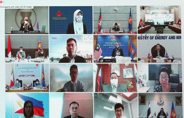 Đại biểu các quốc gia ASEAN them dự Hội nghị Bộ trưởng ASEAN về Khoáng sản lần thứ 8 theo hình thức trực tuyến. Ảnh chụp màn hình/TTXVN |