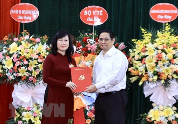 Thủ tướng Phạm Minh Chính trao Quyết định quyền Bộ trưởng Bộ Y tế cho bà Đào Hồng Lan. Ảnh: TTXVN |