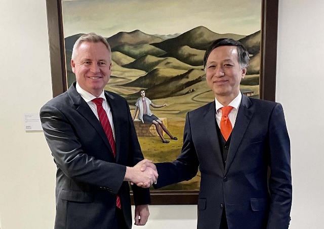 Thủ hiến Jeremy Rockliff tiếp Đại sứ Nguyễn Tất Thành chào xã giao. Ảnh: ĐSQ Việt Nam tại Australia |