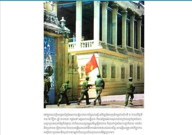 Trong bài viết, báo điện tử Thmey Thmey đăng tải nhiều hình ảnh về Quân tình nguyện Việt Nam và Quân đội Mặt trận Đoàn kết Cứu quốc Campuchia phối hợp huấn luyện và chiến đấu, tiến vào giải phóng Phnom Penh vào ngày 7/1/1979. Ảnh chụp màn hình: TTXVN |