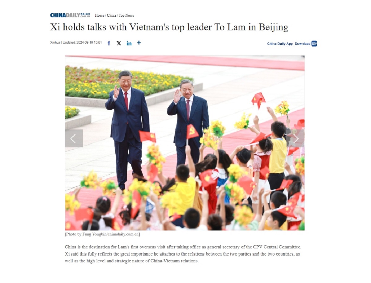 Xã luận của Chinadaily cũng cho rằng cả Trung Quốc và Viêt Nam đều kỳ vọng chuyến thăm của Tổng Bí thư, Chủ tịch nước Tô Lâm sẽ tăng cường hơn nữa hợp tác giữa hai nước trong thúc đẩy công cuộc xây dựng chủ nghĩa xã hội, xây dựng cộng đồng chia sẻ tương lai Trung Quốc - Việt Nam, bảo vệ công bằng và chính nghĩa quốc tế. Xã luận khẳng định hướng tới tương lai, chuyến thăm của lãnh đạo Việt Nam lần này sẽ tiếp thêm động lực cho sự phát triển lâu dài của quan hệ Trung - Việt, cũng như hòa bình và ổn định trong khu vực.