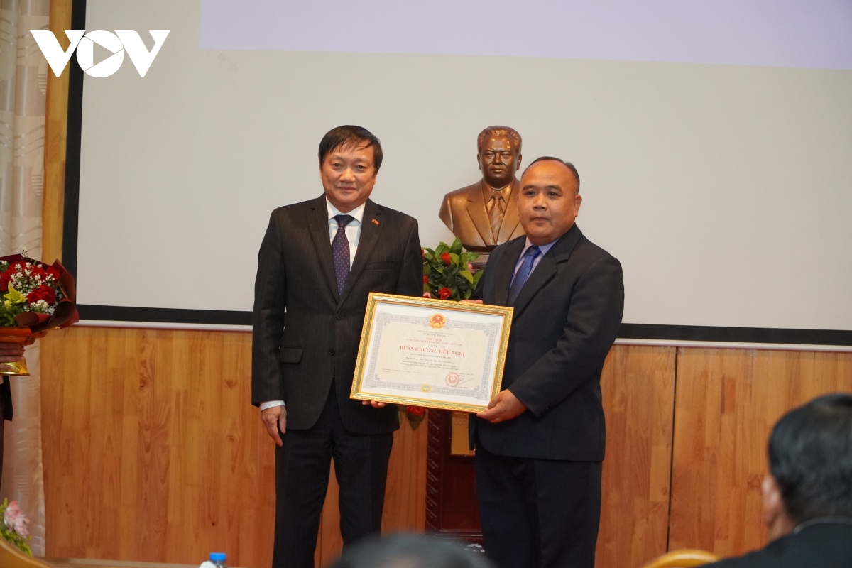 Dự lễ trao Huân chương có đại điện lãnh đạo Văn phòng Trung ương Đảng Nhân dân Cách mạng Lào cùng toàn thể cán bộ, nhân viên Bảo tàng Kaysone Phomvihane.