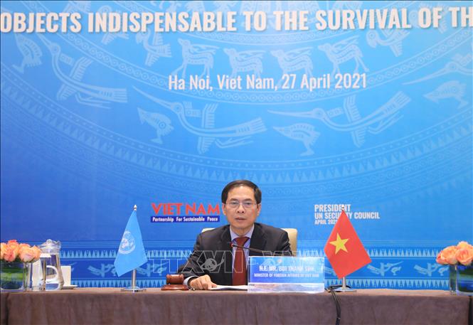 Tối 27/4 (giờ Việt Nam), trên cương vị Chủ tịch Hội đồng Bảo an Liên hợp quốc tháng 4/2021, Bộ trưởng Bộ Ngoại giao Bùi Thanh Sơn chủ trì Phiên thảo luận mở cấp Bộ trưởng về chủ đề “Bảo vệ cơ sở hạ tầng thiết yếu đối với sự sống của người dân” dưới hình thức kết hợp trực tiếp và trực tuyến.