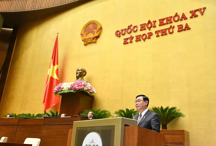 Chủ tịch Quốc hội Vương Đình Huệ nêu rõ để các luật, nghị quyết của Kỳ họp thứ 3, Quốc hội khóa XV sớm đi vào cuộc sống, ngay sau Kỳ họp, Quốc hội đề nghị Chính phủ, Thủ tướng Chính phủ, các cấp, các ngành khẩn trương tổ chức triển khai thực hiện hiệu quả các luật, nghị quyết vừa được thông qua, góp phần nhanh chóng khôi phục và phát triển kinh tế, bảo đảm tốt phúc lợi xã hội, an sinh xã hội sau đại dịch COVID- 19.
