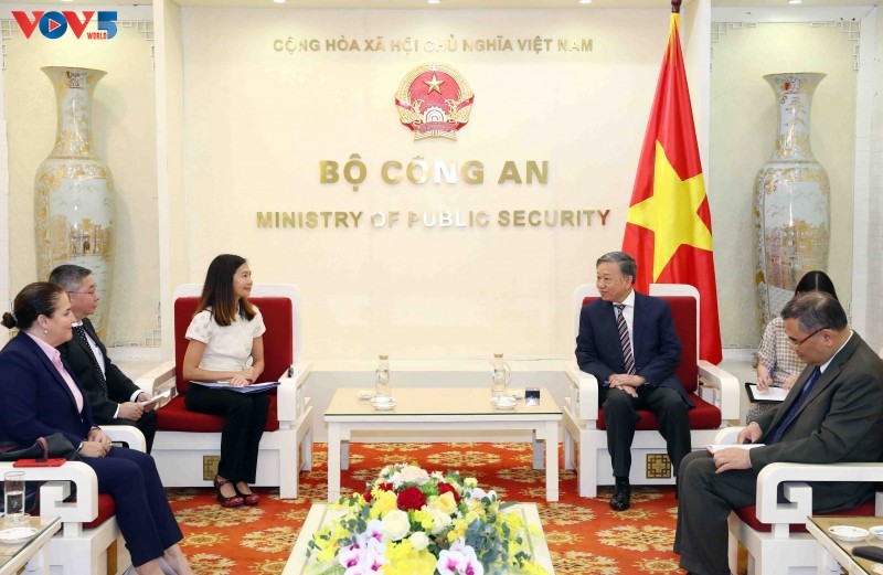 Bộ trưởng Tô Lâm và Điều phối viên thường trú Liên Hợp quốc tại Việt Nam Pauline Tamasis. Ảnh: Việt Cường/ VOV |